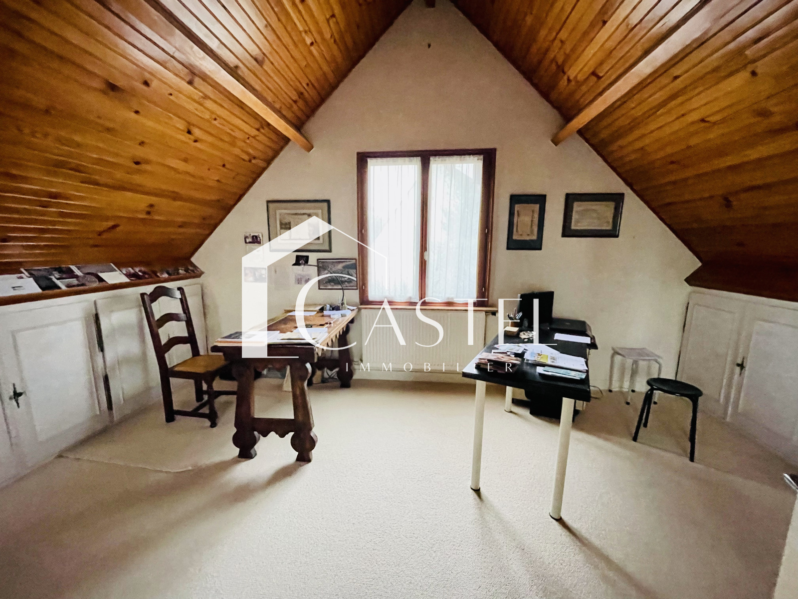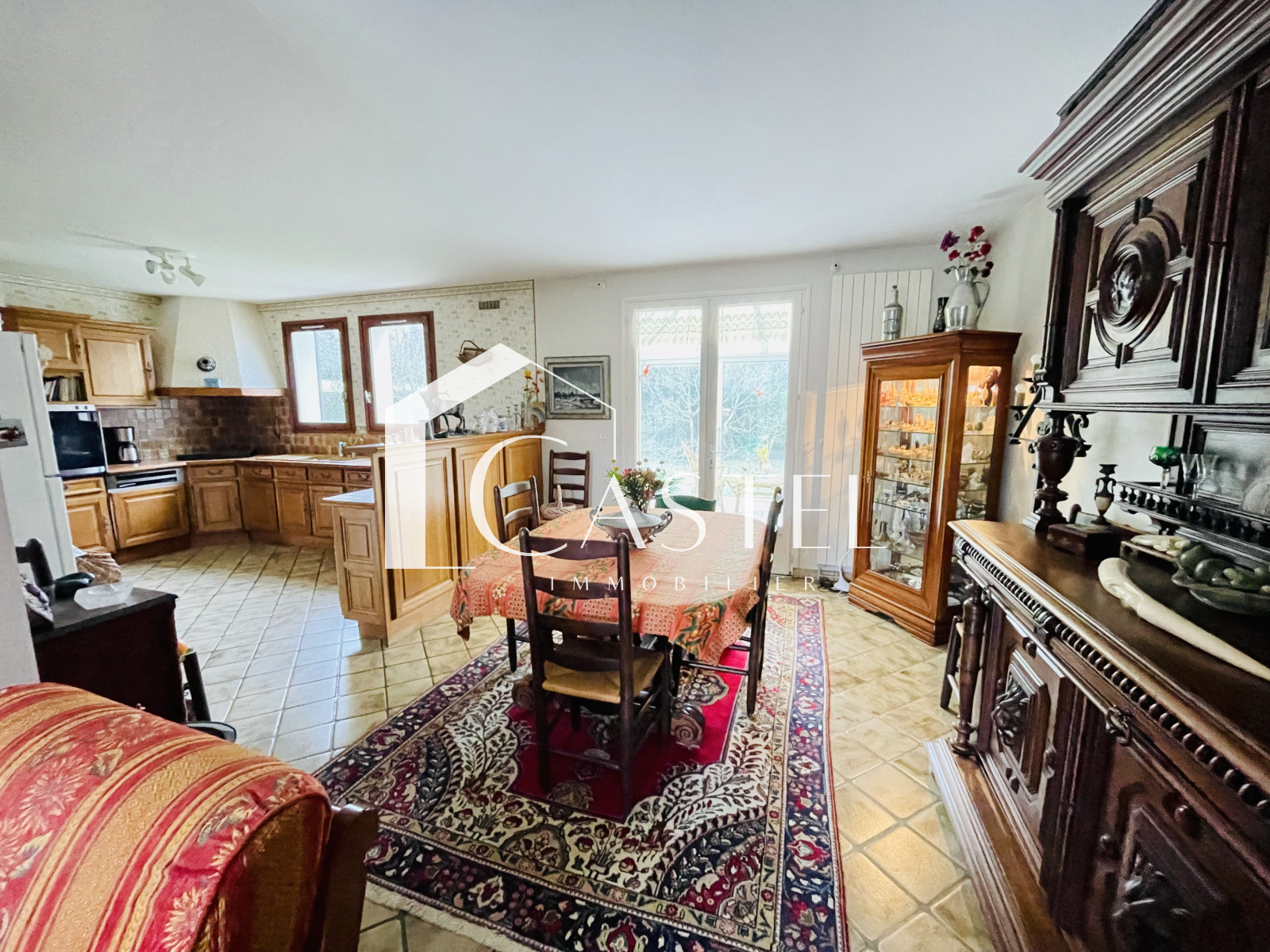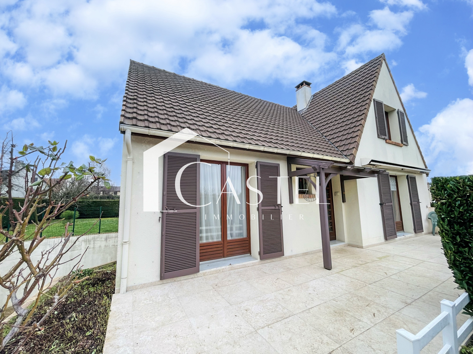 Orgeval (78630)A ORGEVAL, à proximité à pieds du centre-ville, commerces et écoles, venez découvrir cette maison des années 80 sur un joli terrain plat et arboré de 953 m². Elle se compose au rez-de-chaussée, d'une entrée, d'un séjour-salle à manger avec sa cheminée et ses ouvertures sur le jardin avec sa terrasse ensoleillée et également sur une agréable véranda chauffée, la cuisine ouverte complète cette pièce de vie. Une chambre avec sa salle d'eau et les toilettes indépendantes sont également sur ce niveau. Au 1er étage : le palier dessert 3 chambres de belle superficie dont une pouvant être transformée en suite parentale, une salle d'eau et des toilettes indépendantes. Dans le sous-sol total se trouve la buanderie, 2 pièces pouvant être aménagées et un garage double. Possibilité de garer plusieurs véhicules dans la propriété. Quelques travaux de rafraichissements sont à prévoir. Venez découvrir ce bien au fort potentiel en contactant CASTEL IMMOBILIER.