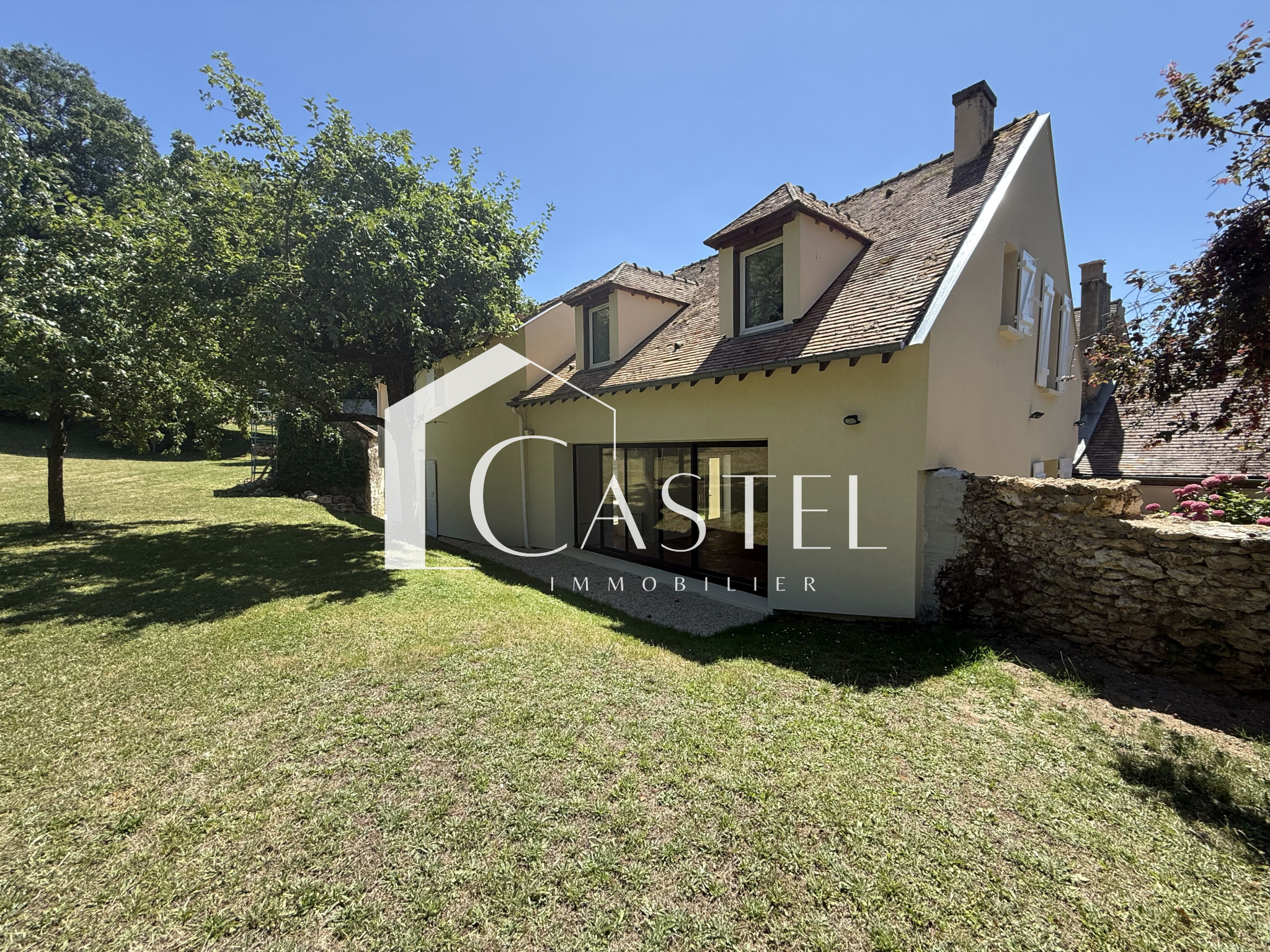 Morainvilliers (78630)Charmante maison ancienne dans un environnement très calme et verdoyant comprenant au rez de chaussée: une cuisine semi – équipée et aménagée, spacieux de 56 m2 avec sa cheminée,sans vis à vis donnant sur le magnifique jardin et la terrase, un WC + lave mains. A l’étage : 4 chambres dont une avec sa salle de bains, un WC, salle de bains. cave voûtée. Le tout sur un terrain arboré 1378 m2. Deux garages.
