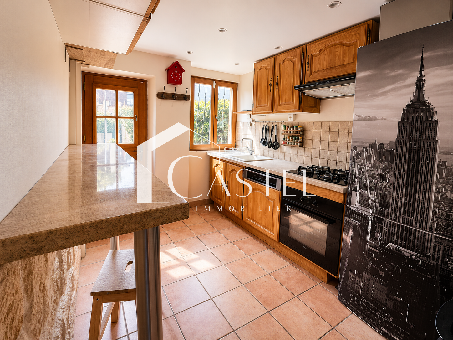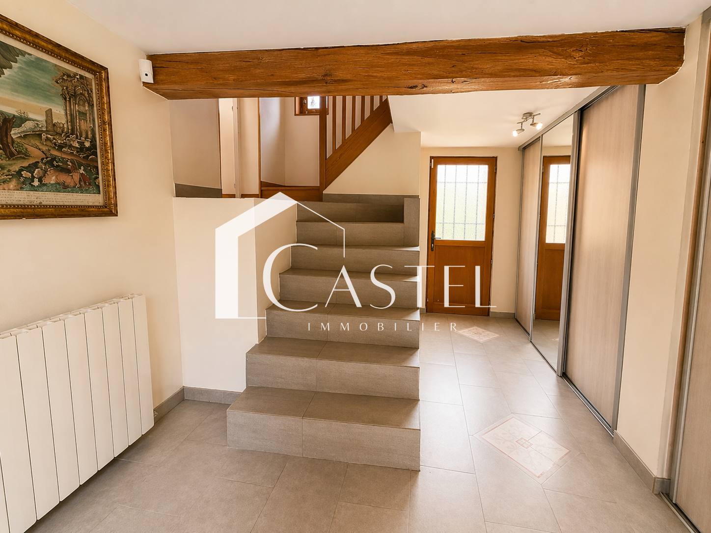 Dès l’entrée, vous découvrez un espace fonctionnel avec rangements d’environ 16 m², desservant l’extérieur et la terrasse.