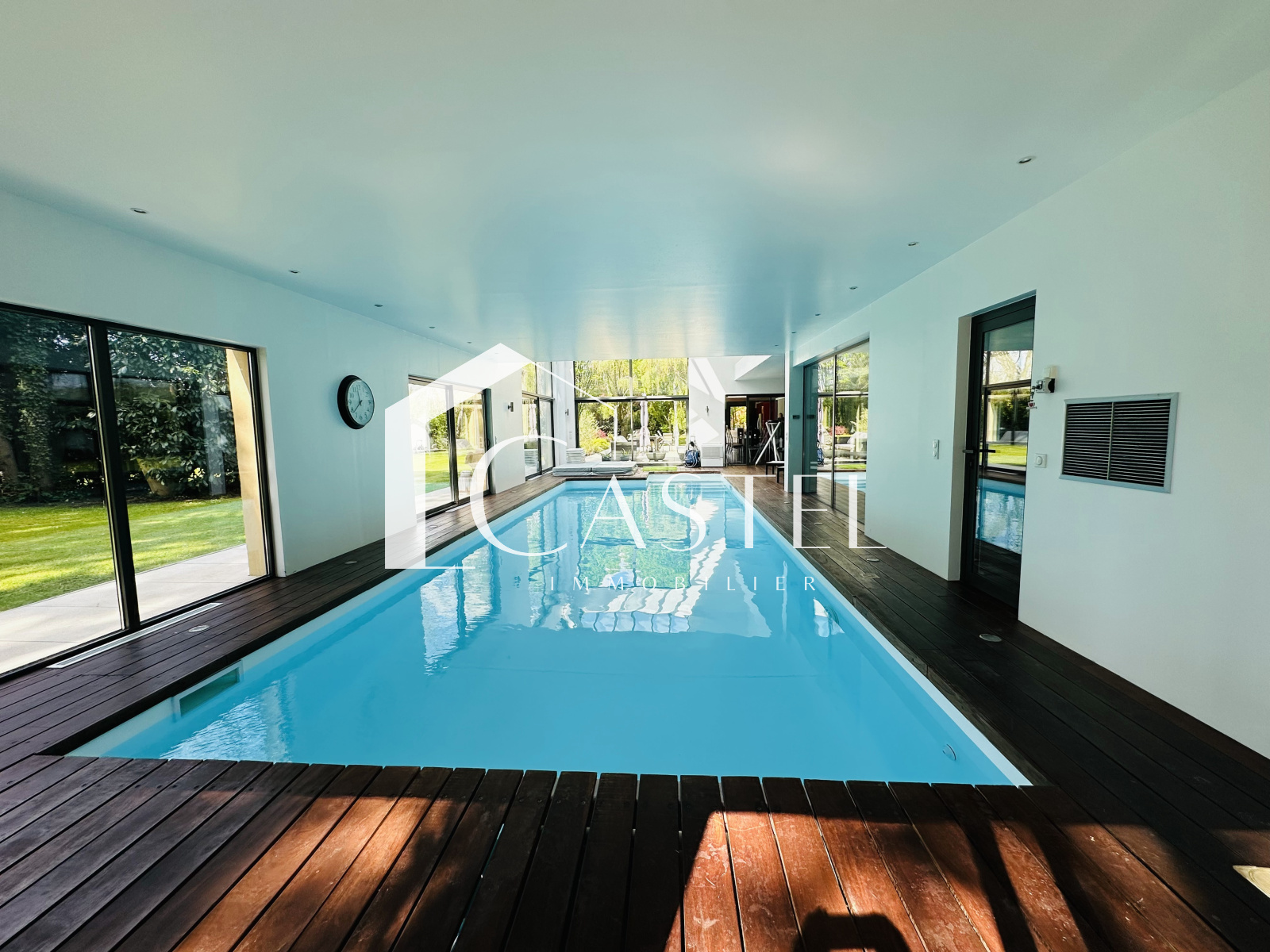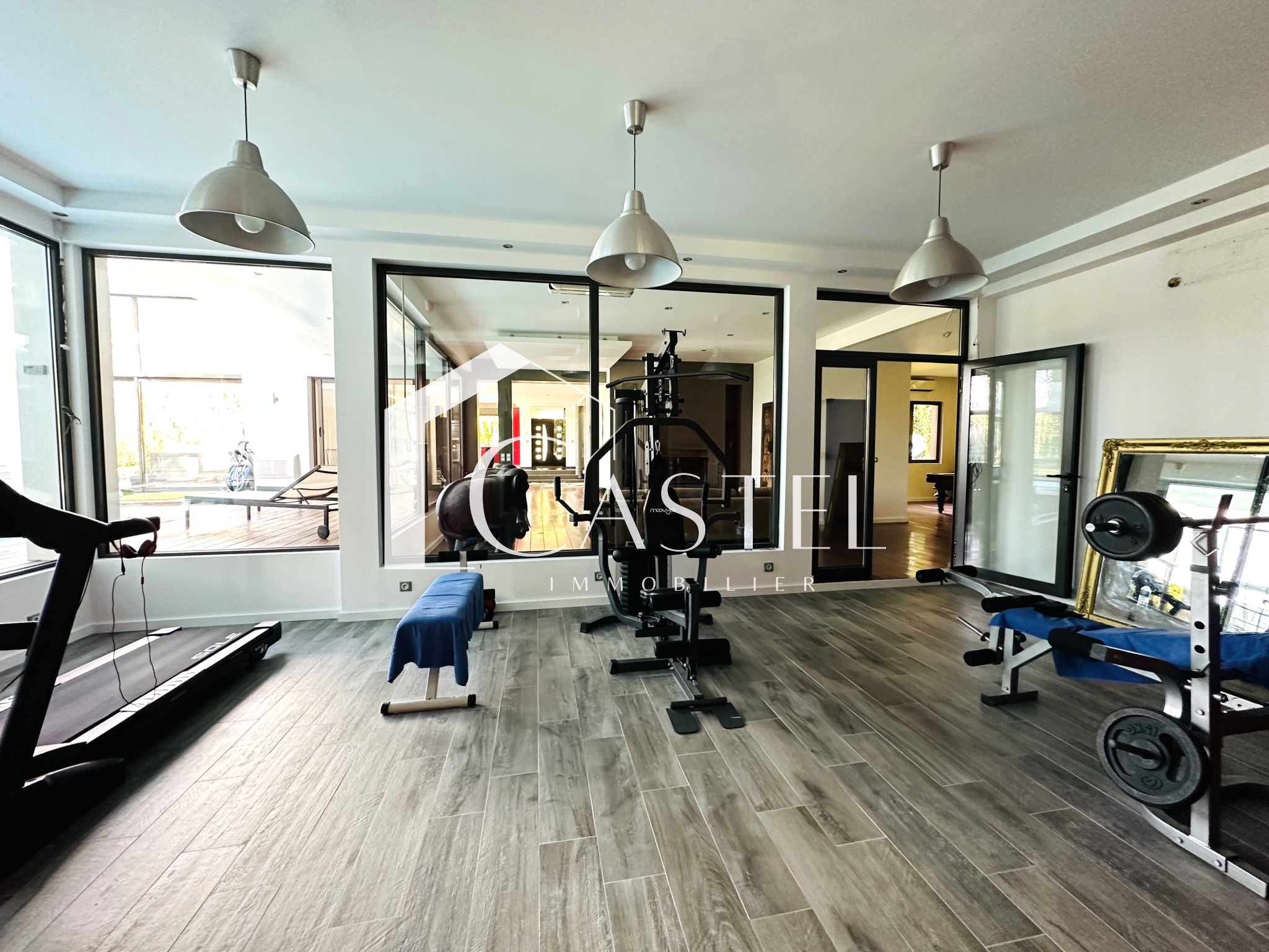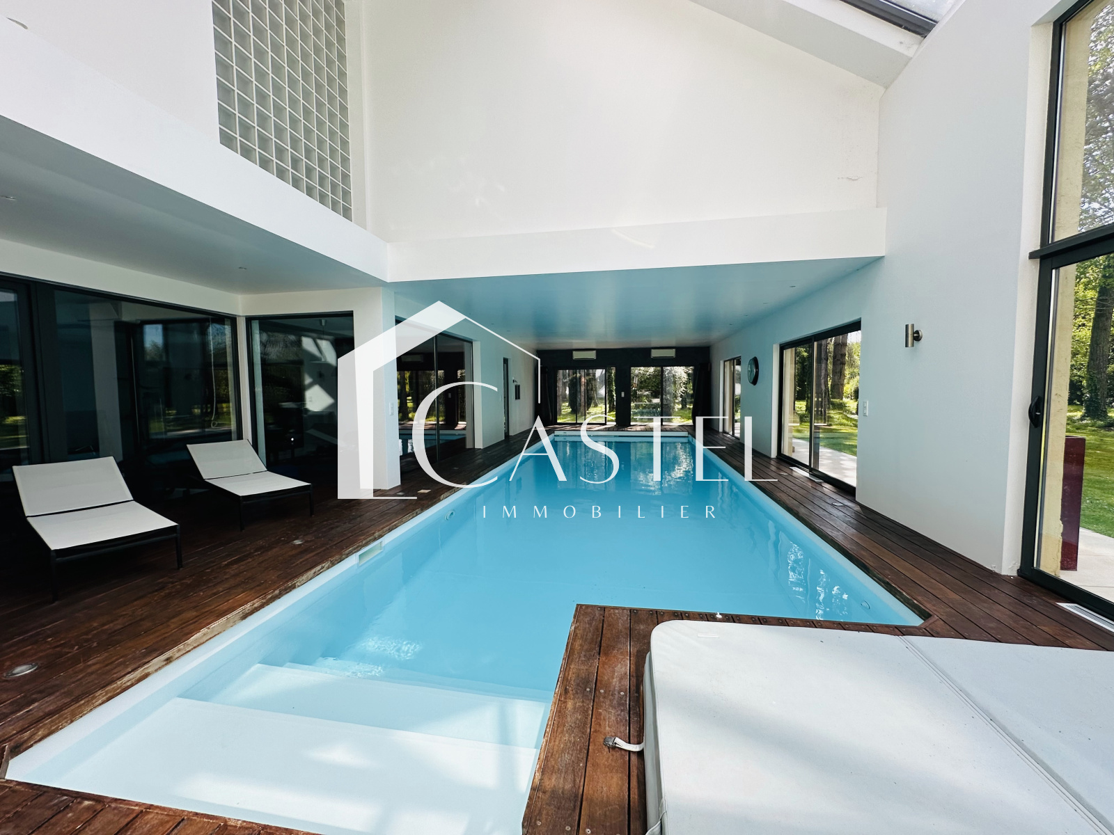 La propriété principale de 900 m² se compose d’une spacieuse réception de plain pied d'environ 150m² ouverte sur le jardin par de larges baies vitrées, d'une cuisine entièrement équipée donnant sur le salon et la salle à manger. Une pièce pouvant être aménagée en chambre avec accès indépendant. Ce niveau est complété par des équipements de loisirs dont un salon billard, une piscine intérieure (11 X 4m) chauffée avec nage à contre-courant, un jacuzzi, une salle de sport avec hammam et douches et deux wc invités.