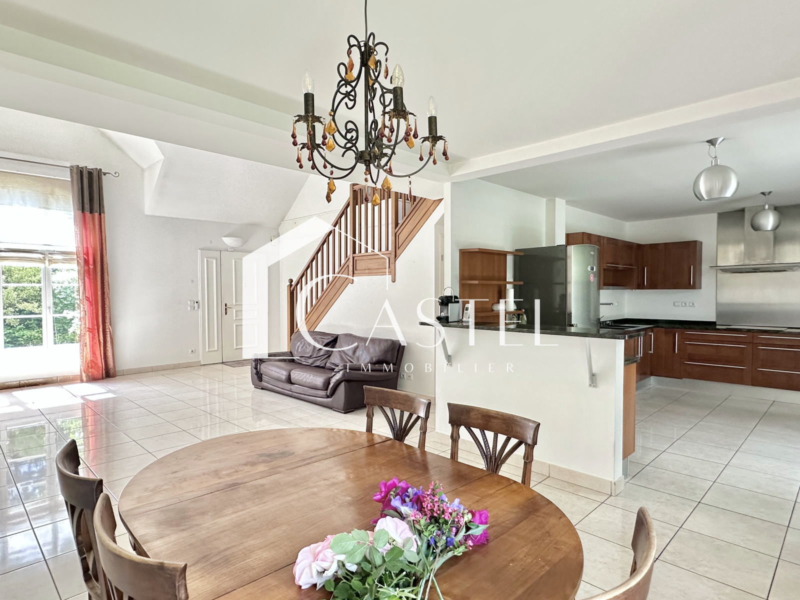 Orgeval (78630)Villa Kaufman and Broad dans un domaine sécurisée de 161 m² habitables sur un terrain de 756 m2, sans vis-à-vis au calme, au sein d'une résidence de 2006 très bien entretenue. Dès l'entrée au rez de chaussée , séjour cathédrale de de 44 m2, lumineux et traversant avec cheminée en pierre et son insert, cuisine ouverte, aménagée et équipée de 16 m2. Cuisine et séjour s'ouvrent sur la terrasse et le jardin, spacieuse suite parentale de 16 m2 avec sa salle de bains avec baignoire et douche, wc et son dressing, une autre chambre avec placard et salle d'eau, un wc indépendant avec lave-mains, un grand placard sous l'escalier et une buanderie donnant accès au grand cellier et au garage. A l'étage, la mezzanine est idéale pour en faire un coin bureau, 2 chambres avec placard et une salle de bains avec wc. Possibilité de garer 2 véhicules dans le garage et 2 autres à l'extérieur devant le garage.