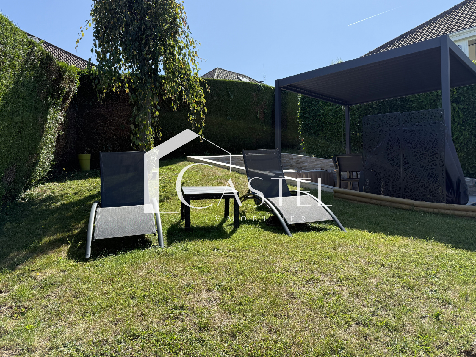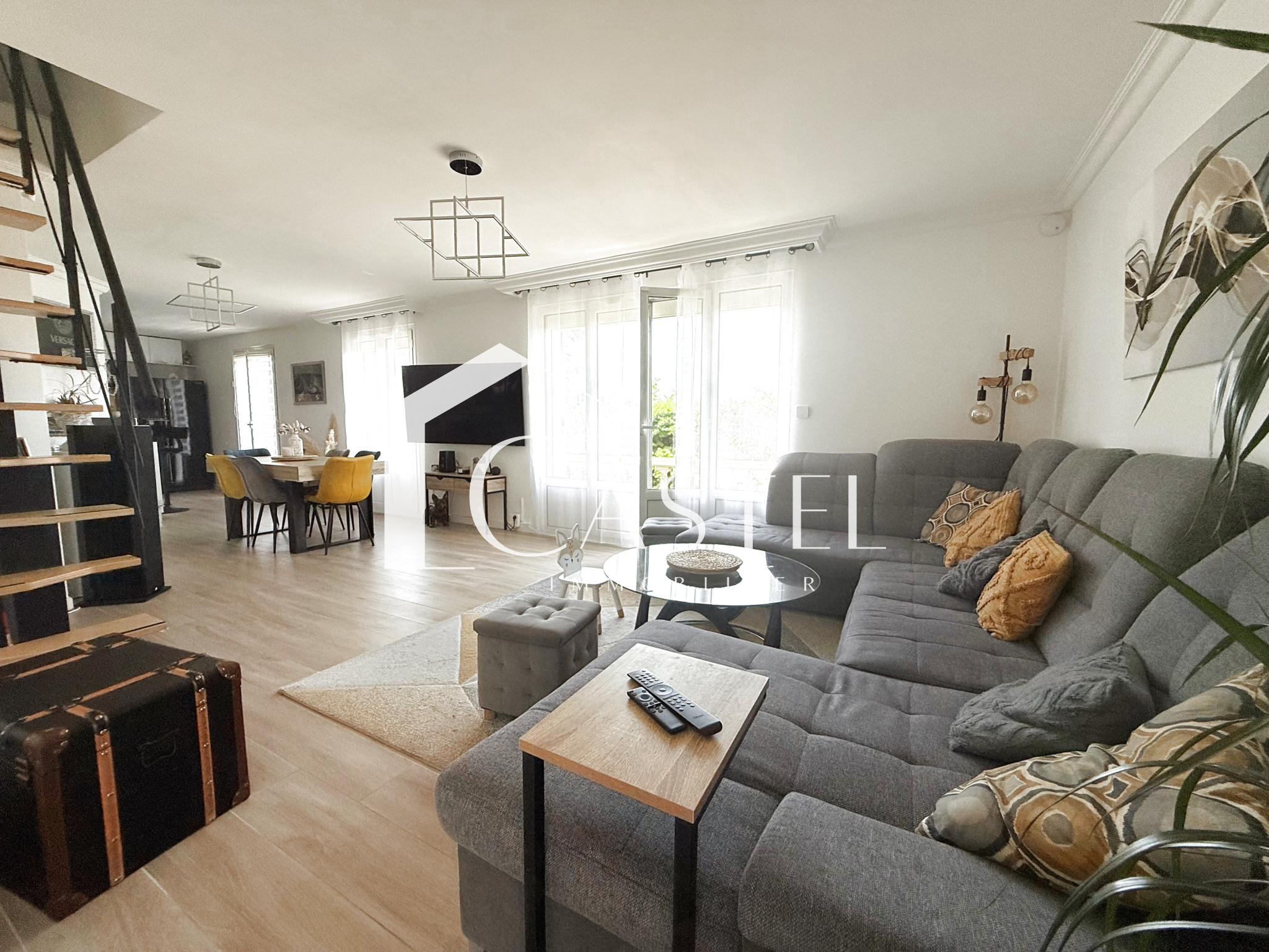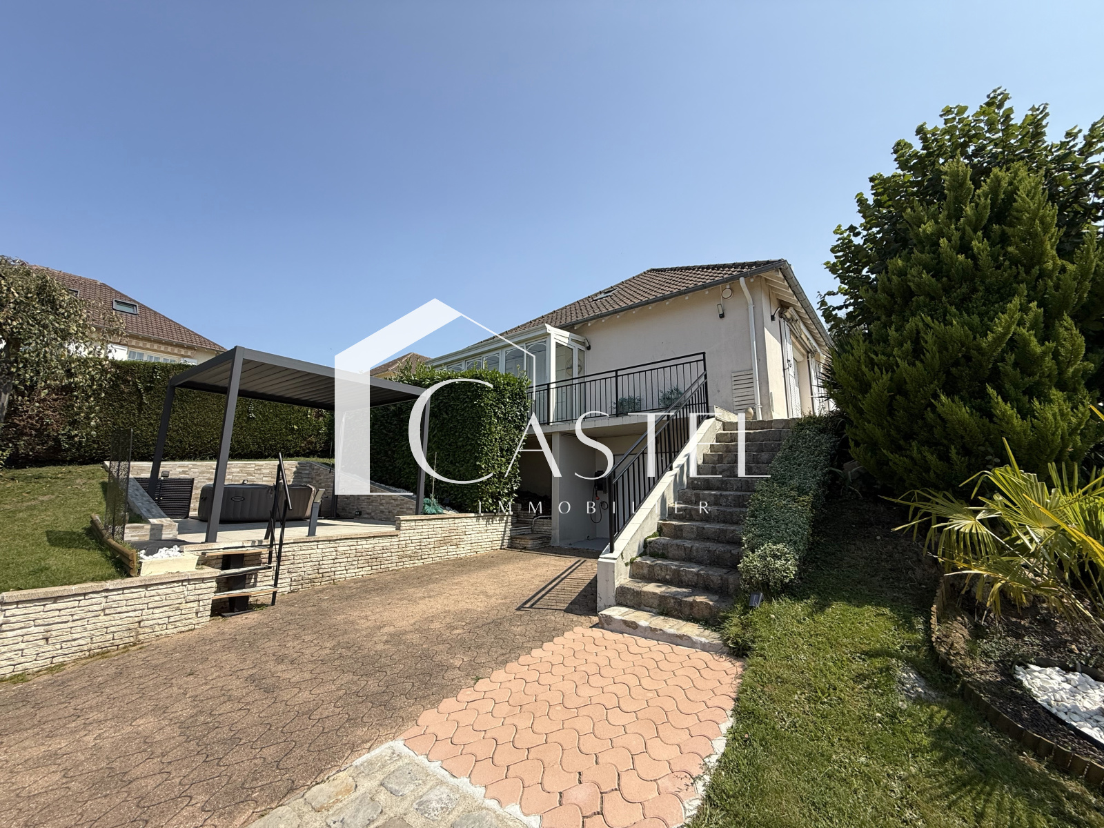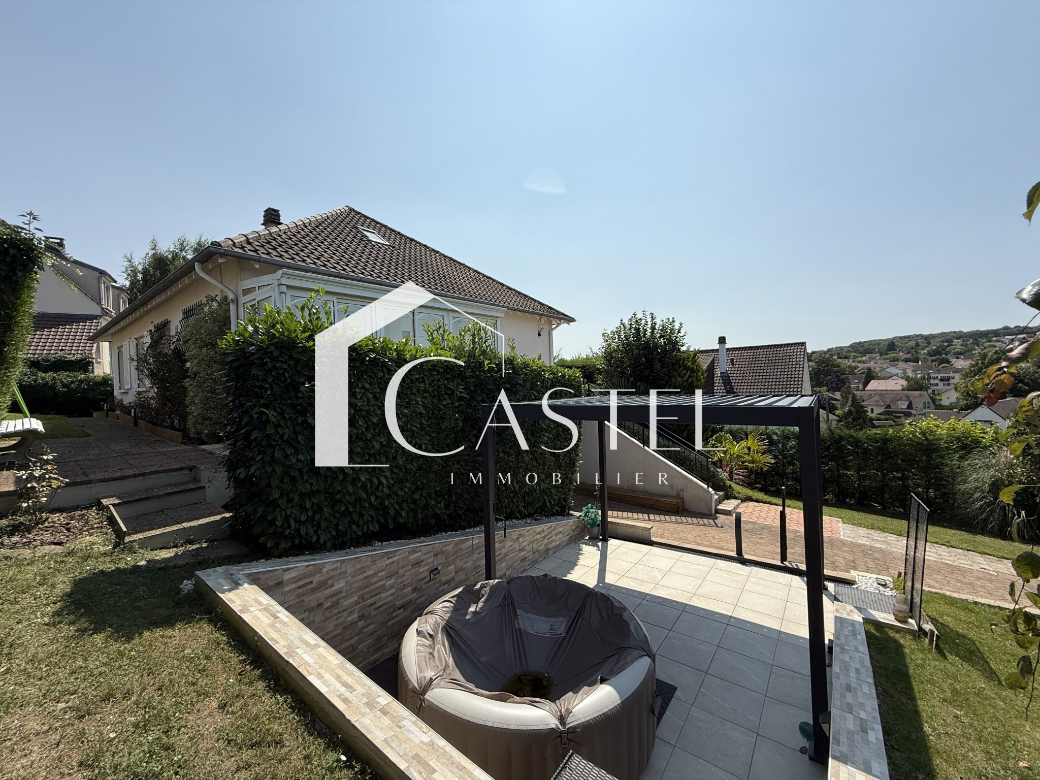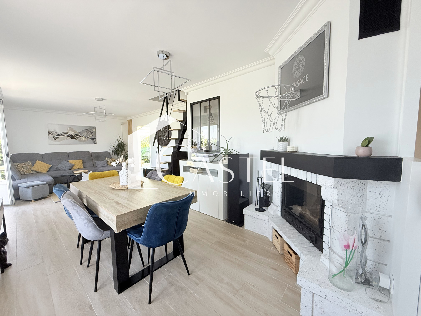 Orgeval (78630)Belle maison entièrement rénovée avec gôut, au calme d'une impasse en plein coeur du village et une vue dégagée . Elle se compose au rez de chaussée d'une entrée donnant sur une pièce à vivre lumineuse avec cheminée, une cuisine ouverte équipée, un bureau, 2 chambres, une salle d'eau, toilettes indépendant. A l'étage : Grande suite parentale avec dressing, salle de bains et wc. Très beau sous sol total aménagé en double garage, salle de jeux, cave à vin, cuisine d'été. Jardin clos de 651m2. 2 terrasses dont une couverte, Possibilité de rentrer 2 voitures en plus du garage. Ecoles et commodités à 2 min. A venir découvrir sans tarder.