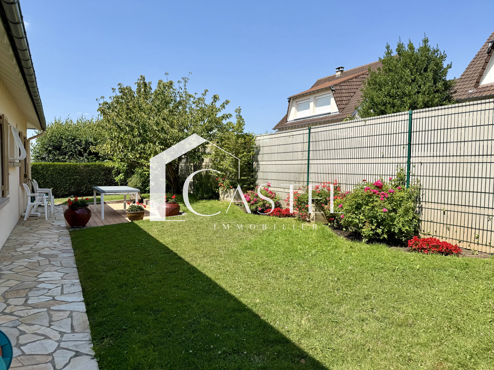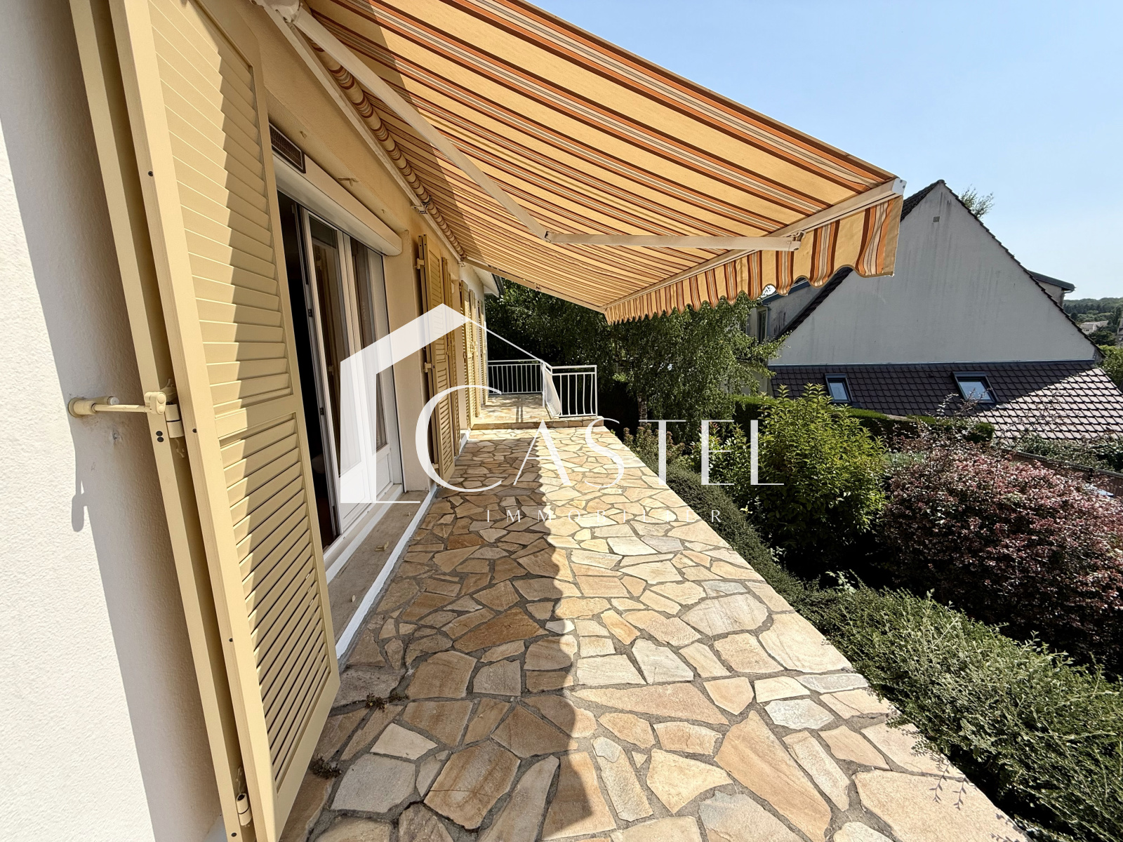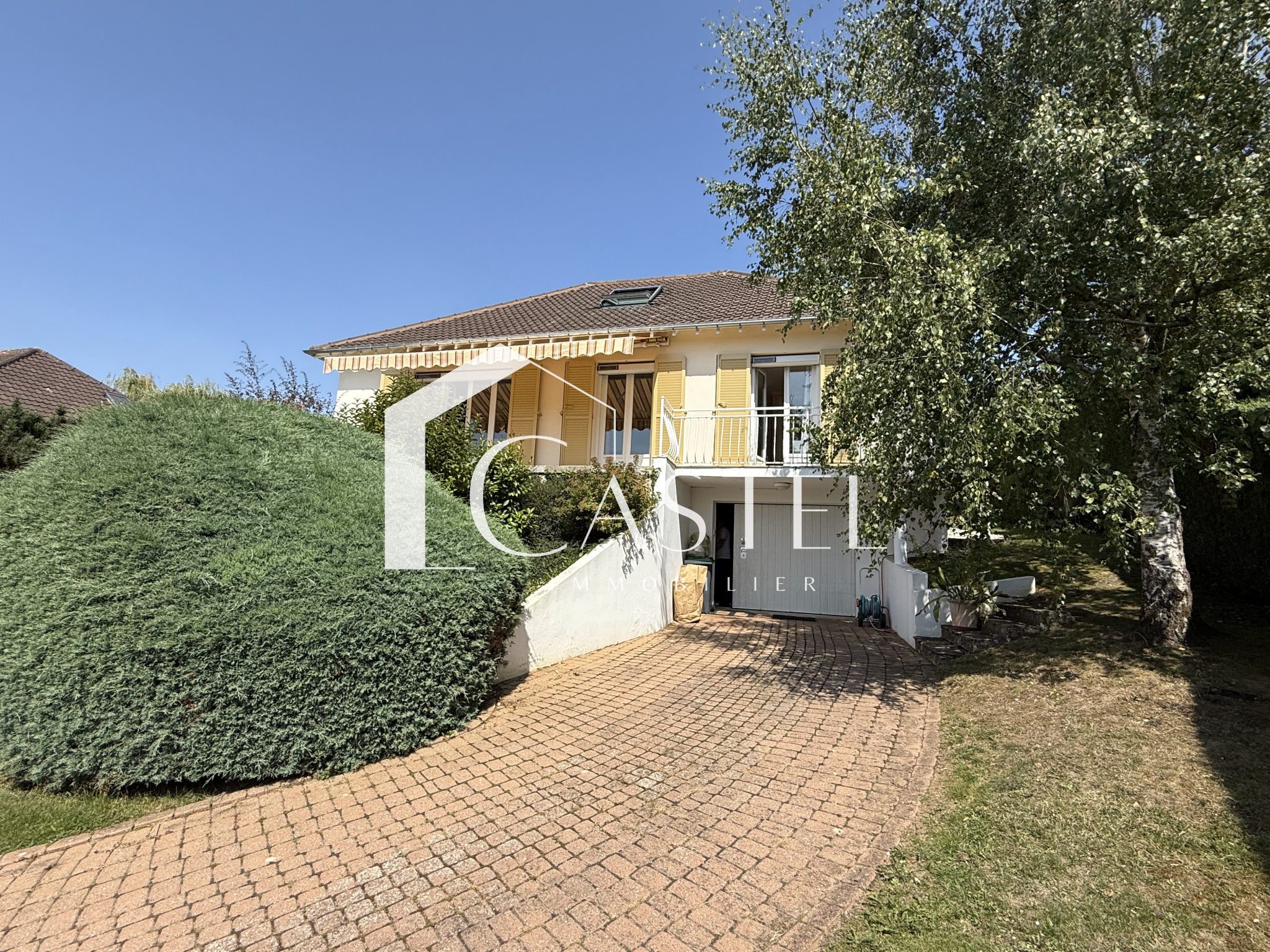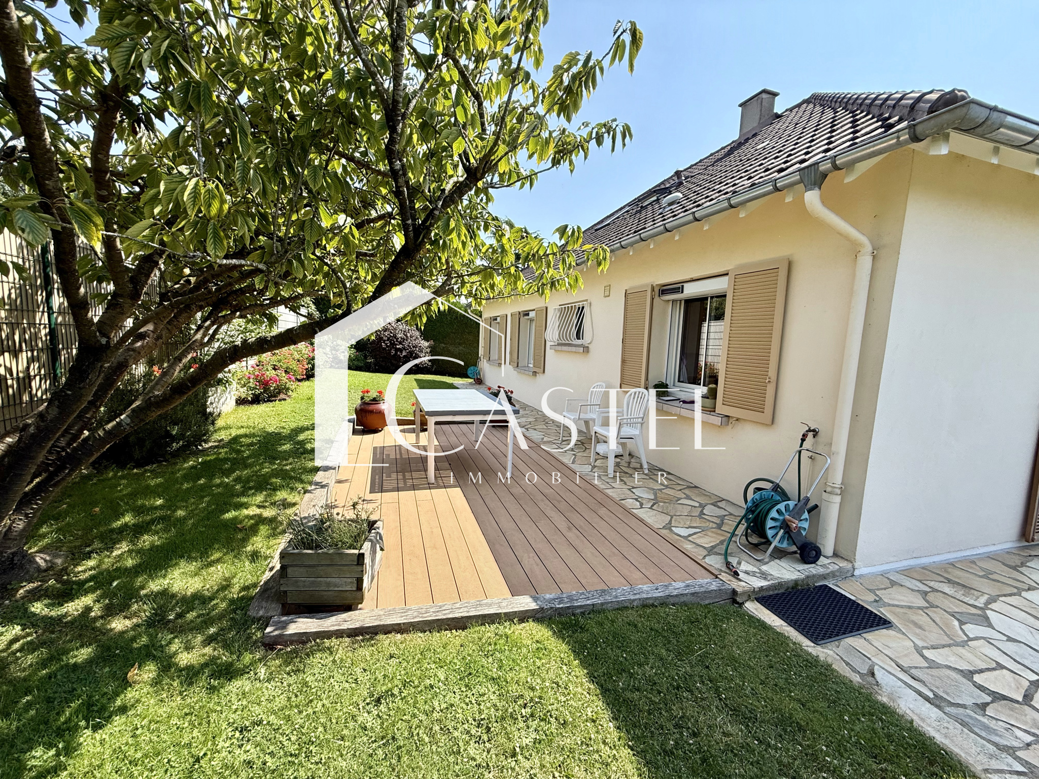 Orgeval (78630)Nouveauté Exclusivité CASTEL, Belle maison à 2 pas du centre ville en parfait état, au fond d'une impasse, dans un calme absolu, une magnifique vue dégagée sur le centre ville. Elle se compose d'une entrée donnant ensuite sur une belle pièce à vivre lumineuse avec cette belle vue sur le coeur du village, cuisine équipée aménagée, salle de bains (récente) 2 chambres au rez de chaussée, , toilettes, un bureau. A l'étage grande chambre parentale avec salle de bains + wc. Sous sol total avec un double garage, buanderie, cave à vin. Jardin clos de 561m² sans vis à vis, 2 terrasses. Double vitrage et volets électriques, portail et porte de garage automatique. Commerces et commodités à pied.