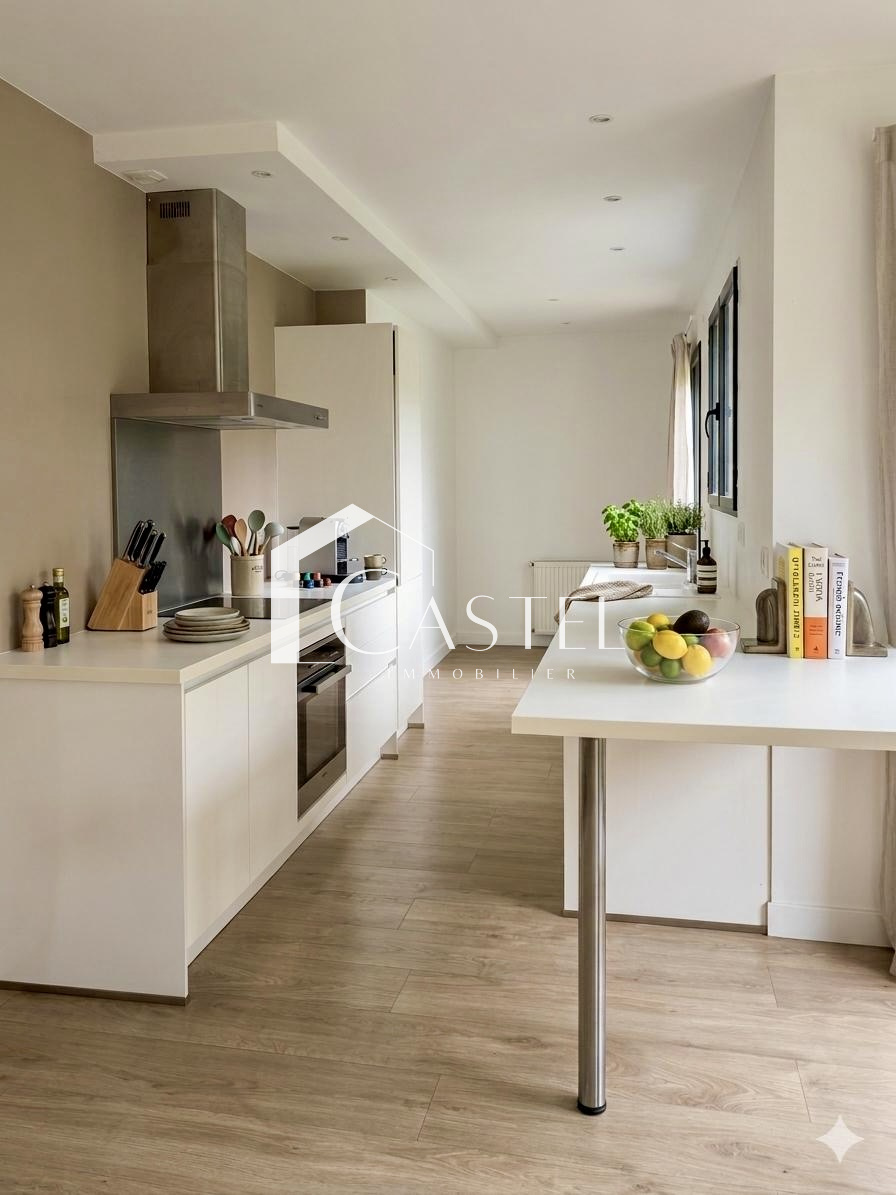 Orgeval (78630)Dans environnement très agréable à quelques minutes à pied du centre d'Orgeval, au calme d'une impasse, maison BBC de 2015 d'environ 145 m² habitables sur un terrain arboré de 210 m². Elle comprend au rez-de-chaussée, une cuisine américaine équipée (hotte, plaques, four, lave vaisselle, réfrigèrateur, lave linge), une salon / salle à manger avec double exposition Nord-Sud avec accès jardin, un wc, un cellier, une chambre avec salle d'eau et placards. A l'étage, le palier dessert une salle d'eau, un wc et 4 chambres dont une suite parentale avec placards et salle de bains. Agréable terrasse à l'avant de la maison à l'abri des regards. Chauffage individuel au gaz, ballon thermodynamique. Place de parking en extérieur. Disponible IMMEDIATEMENT.