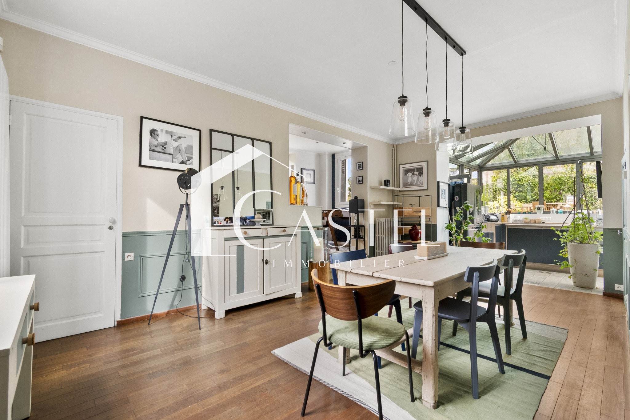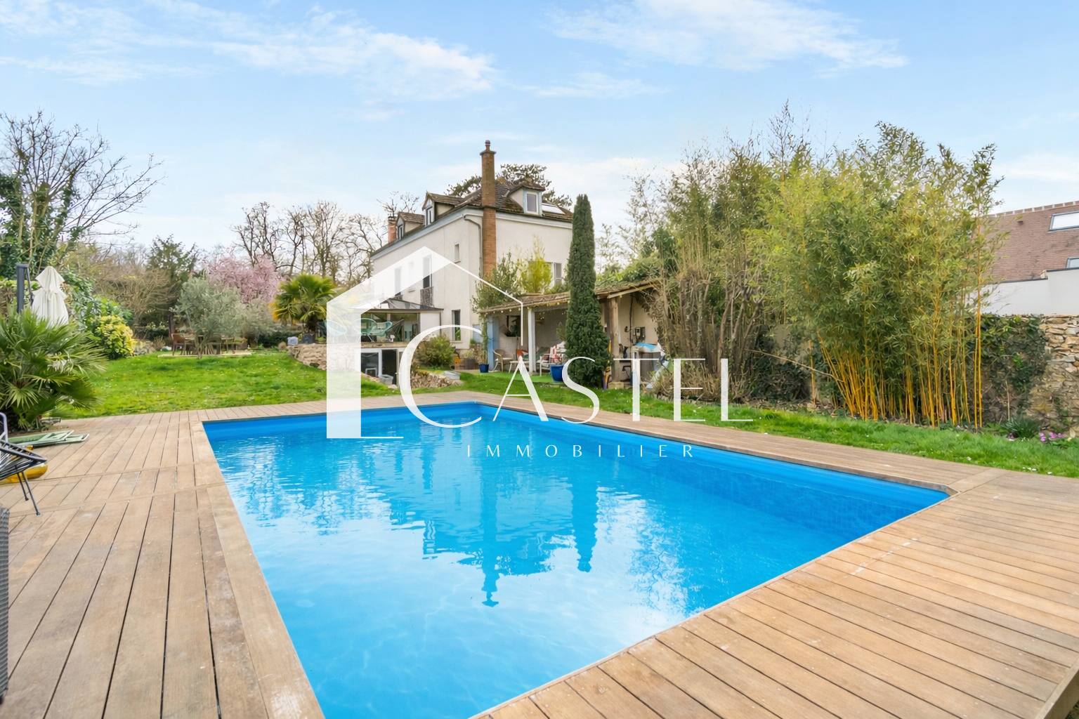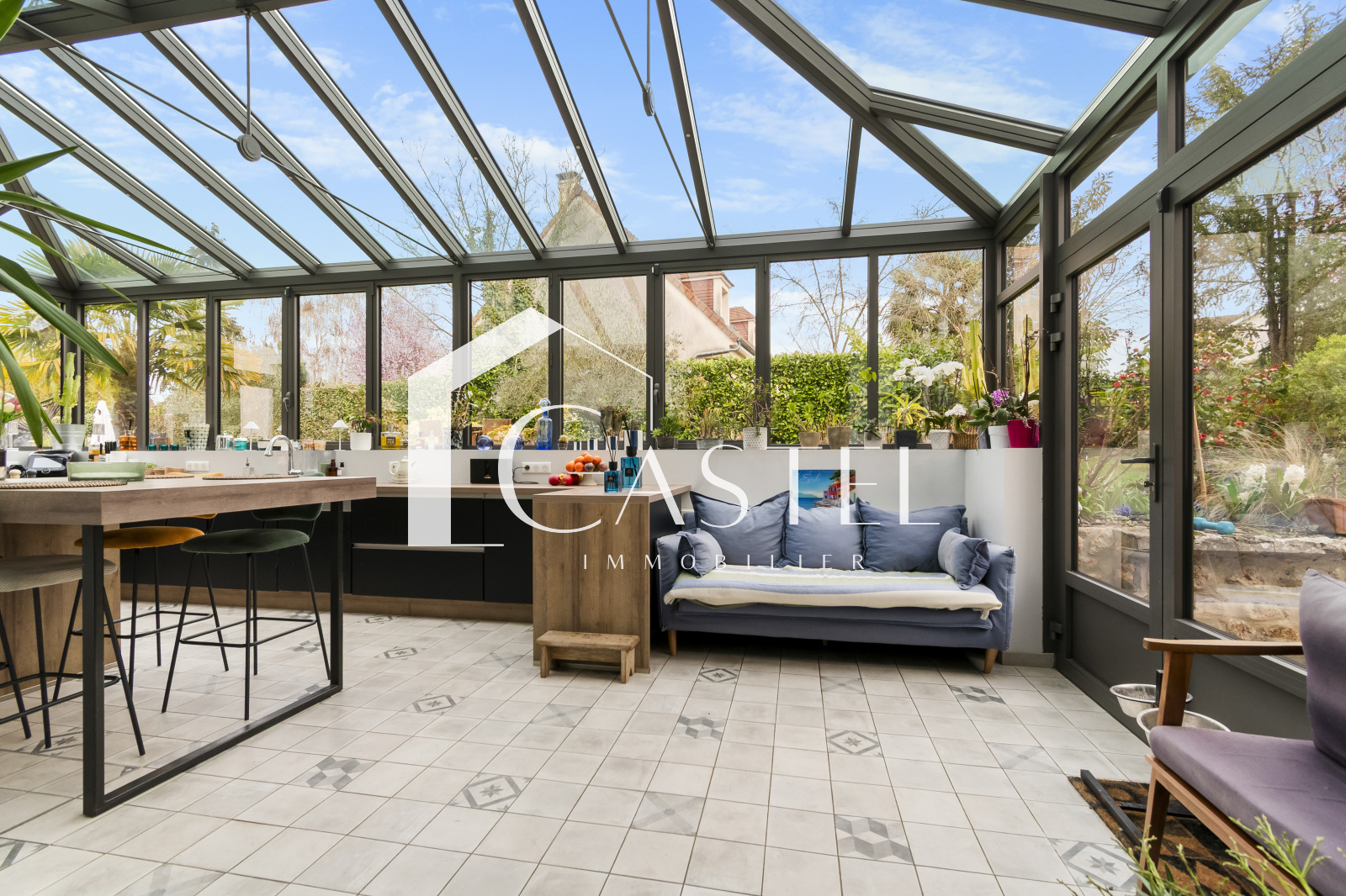 Le jardin, sans vis-à-vis, d'environ 1000 m2 abrite de nombreux espaces de convivialité, une piscine chauffée ainsi qu'une serre ancienne remplie de charme.
