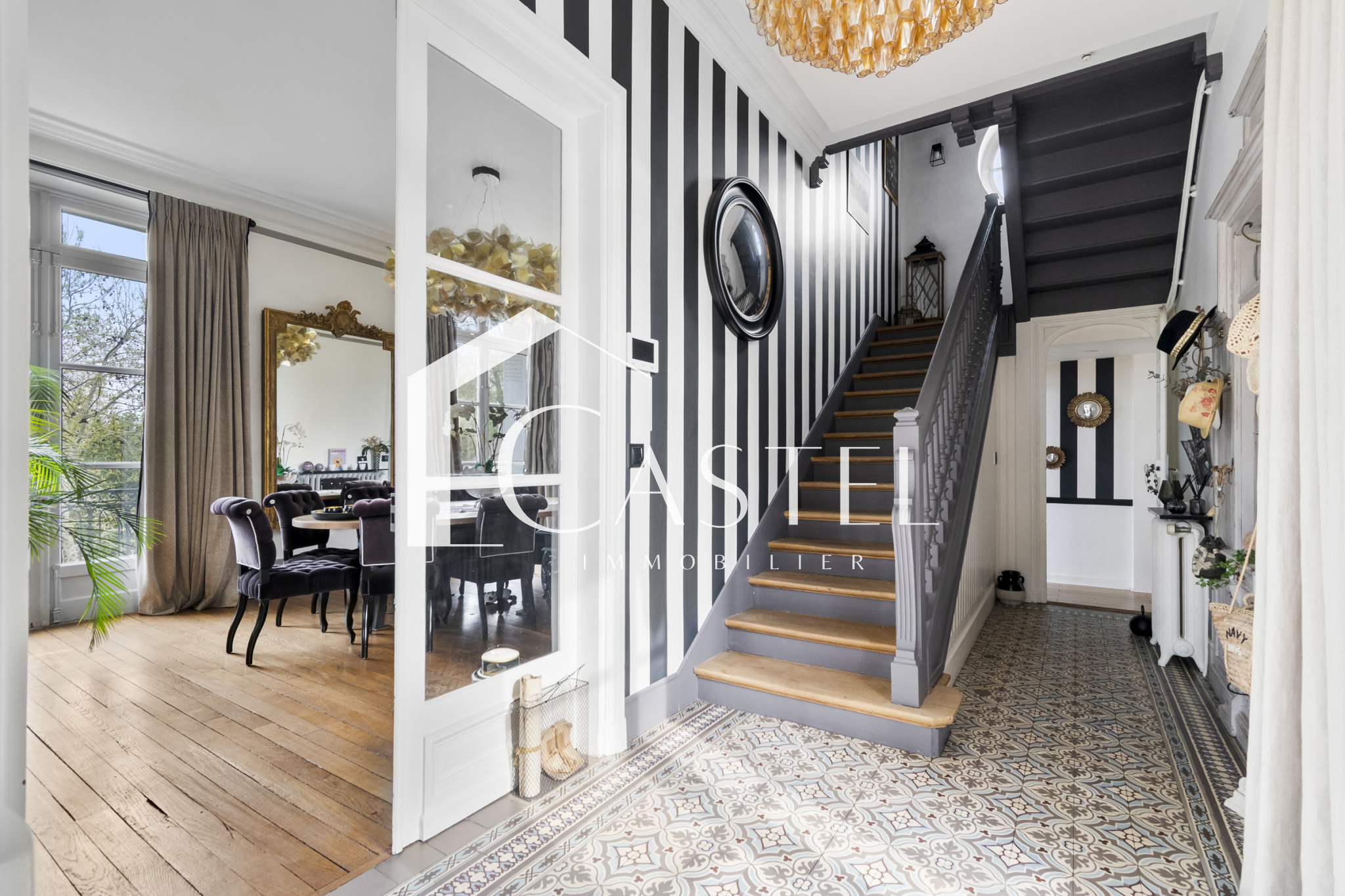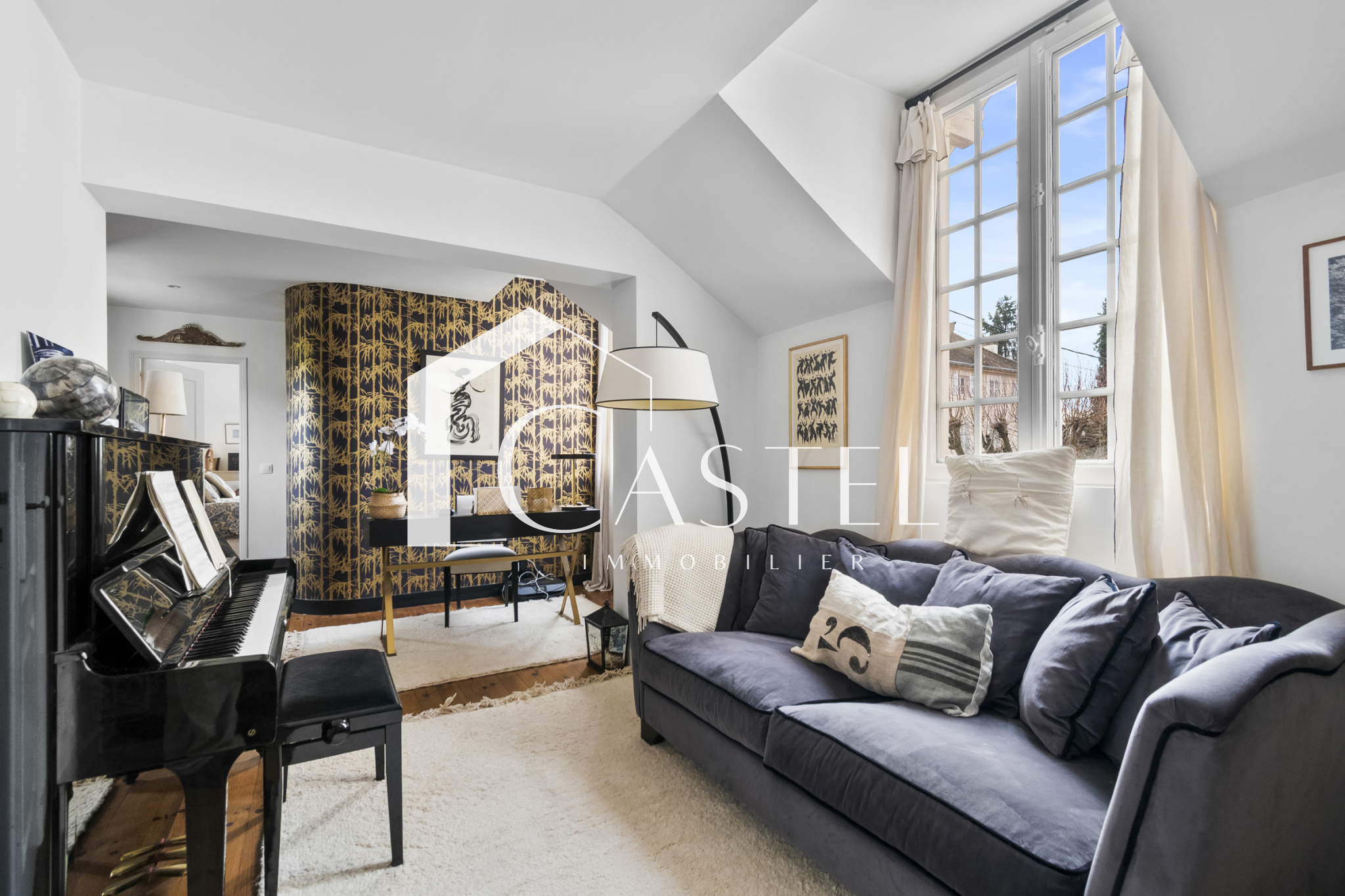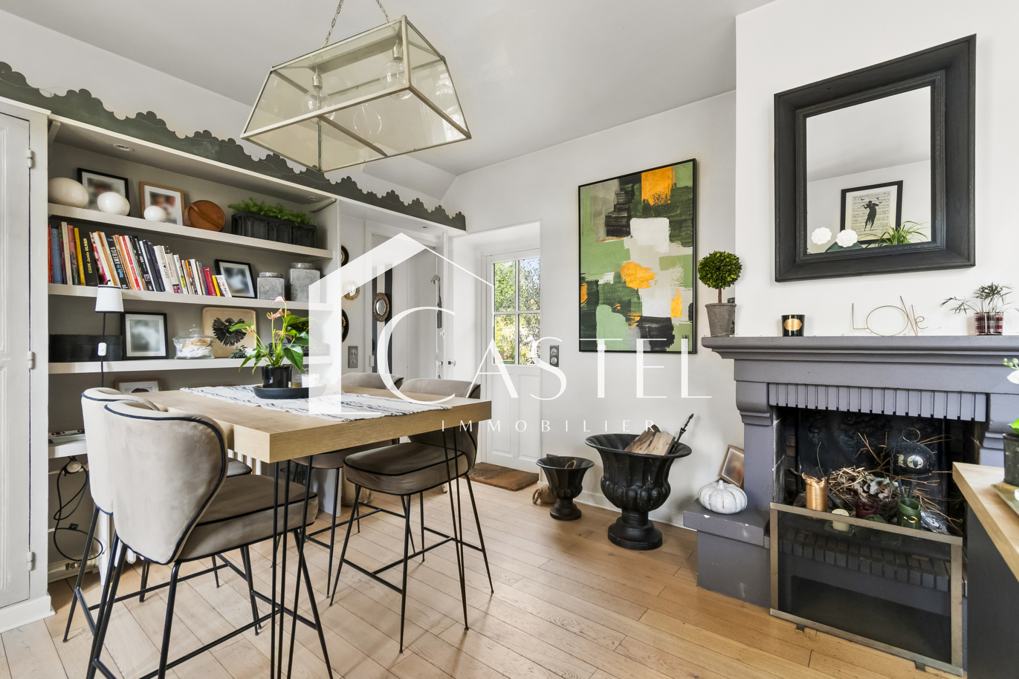 Orgeval (78630)A Orgeval, élégante maison de maître de la fin du XIXe siècle au charme fou, ses volumes, sa luminosité et sa rénovation de qualité aux prestations soignées et avec goût. Elle bénéficie d'un magnifique jardin arboré, agrémenté de vues dégagées sur la campagne environnante. Elle vous propose 280 m² habitables (hors sous-sol). Elle comprend : Au rez-de-chaussée, Belle entrée avec carreaux de ciment anciens, salon lumineux avec cheminée, ouvert sur terrasse et balcon par de nombreuses portes vitrées (3,25m de hateur sous plafond), salle à manger, cuisine ouverte haut de gamme Gaggenau avec espace dînatoire et cheminée fonctionnelle, buanderie attenante avec rangements sur mesure, toilettes invités.