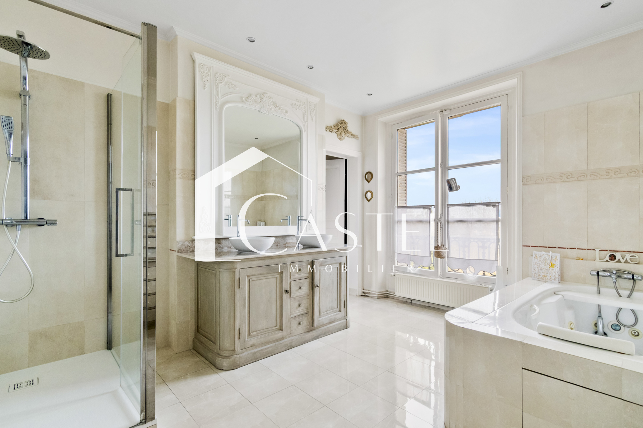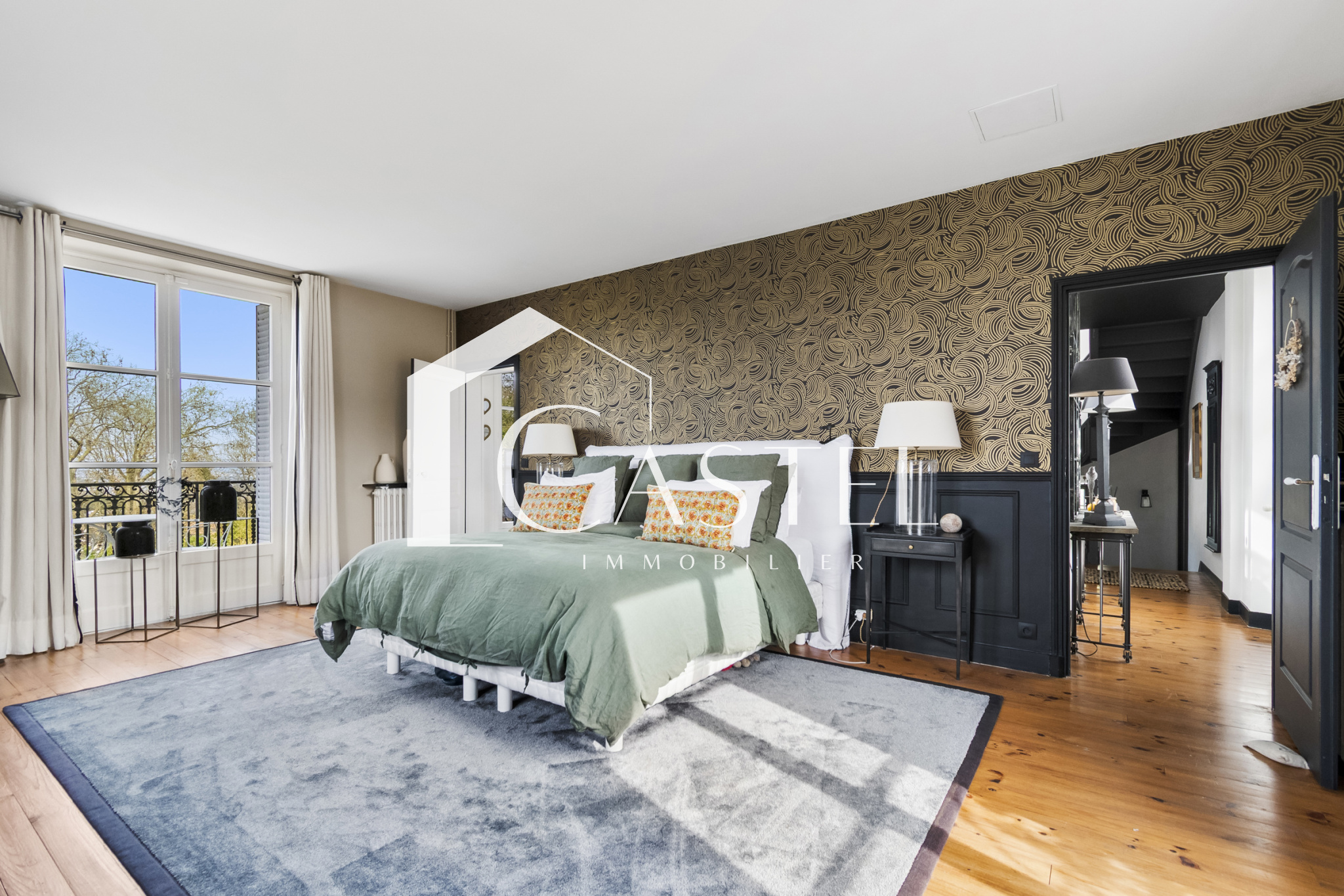 Au 1er étage (2,70m de hateur sous plafond), bureau avec chambre d'amis et sa salle de douche, belle suite parentale de plus de (55 m²), triple exposition, dressing sur mesure, salle de bains (baignoire et douche), toilettes séparées .