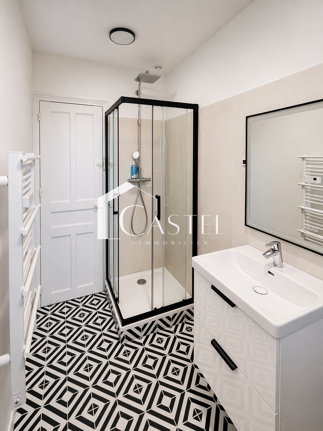 Au rez-de-chaussée, l’entrée dessert une cuisine indépendante d’environ 20 m² avec verrière, une salle à manger de 20 m² exposée Ouest avec moulures, cheminée décorative, hauteur sous plafond de 2,80 m et carreaux de ciment anciens en très bon état. Une première chambre / bureau de 16 m² complète ce niveau. Un second dégagement mène à un double salon de 31 m², un cellier, un WC indépendant et une salle de cinéma.