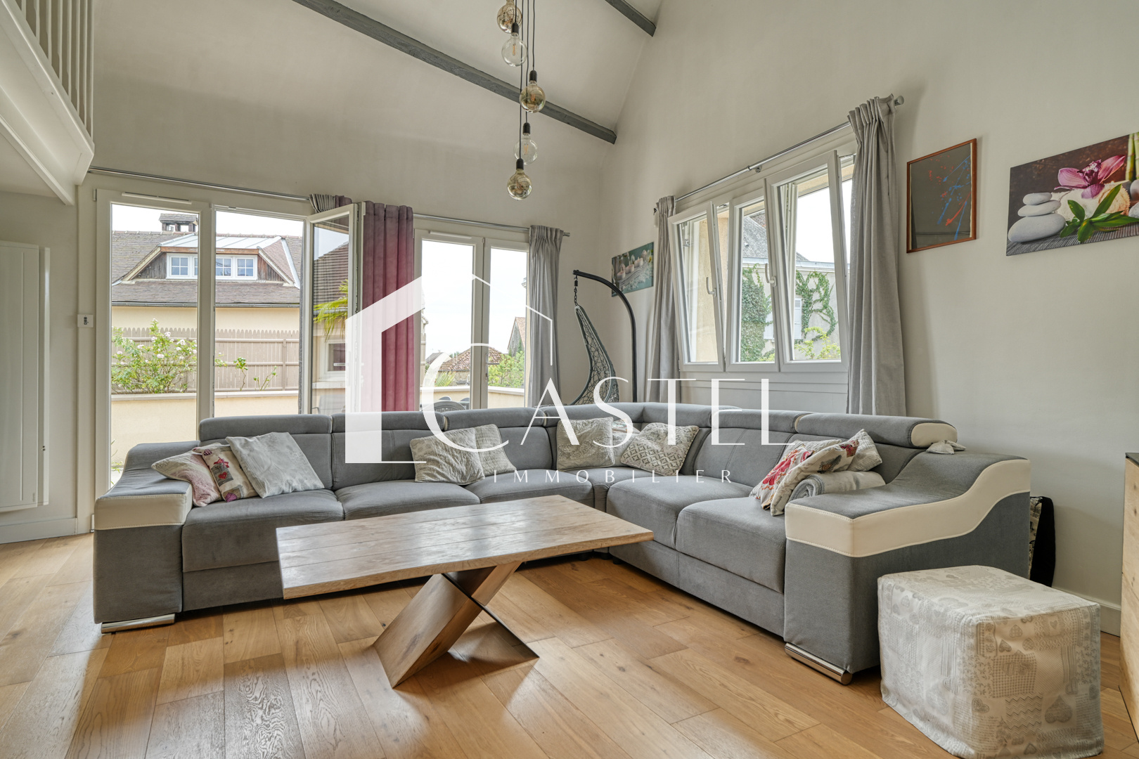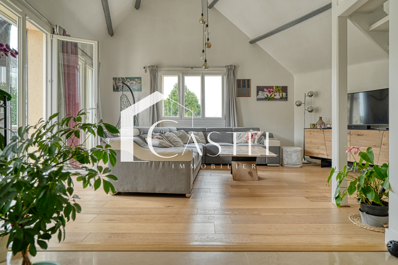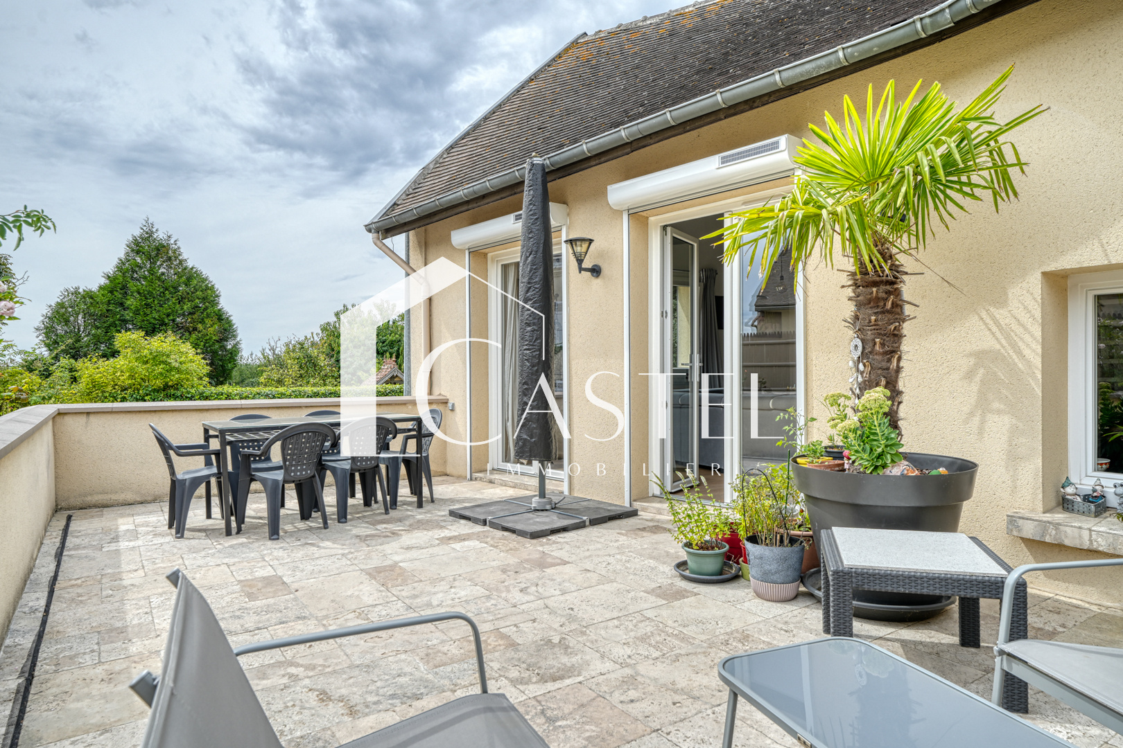 Alluets-le-Roi (78580)En plein coeur du village des Alluets le Roi, à 5 min du centre ville d'Orgeval. Belle maison ancienne entièrement rénovée avec goût de 162m2 habitable sur 260m2 de terrain clos avec piscine. Elle se compose : d'une entrée avec des placards, une salon et salle à manger cathédrale avec accès directement à la terrasse, une chambre avec salle d'eau + wc, cuisine ouverte équipée. toilettes indépendant. A l'étage grande suite parentale avec salle de bains, wc, nombreux rangements et un petit coin bureau. Au rez de jardin vous trouverez, une chambre / salle de jeux, salle de bains et wc, buanderie, cave, local technique. Proches des écoles et commodités de la commune.