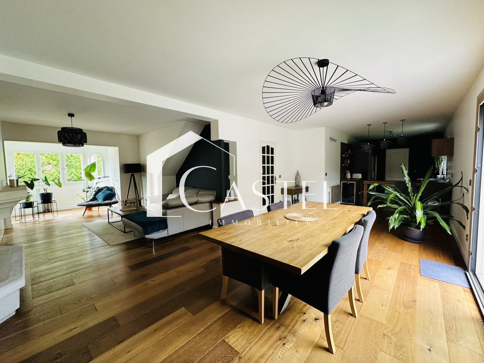 Morainvilliers (78630)Seul mandataire. Belle maison dans un état irréprochable de 150 m² habitables offrant : une entrée avec placards, un spacieux séjour / salle à manger avec cheminée donnant sur l'agréable terrasse, une cuisine ouverte équipée, une buanderie, une chambre au rez-de-chaussée avec salle d'eau neuve, toilettes. A l'étage : une chambre avec dressing, une salle de bains récente, 2 chambres, une salle d'eau, toilettes. Garage. Jardin clos et plat de 600 m² sans vis à vis. Il ne reste plus que vos meubles à poser.