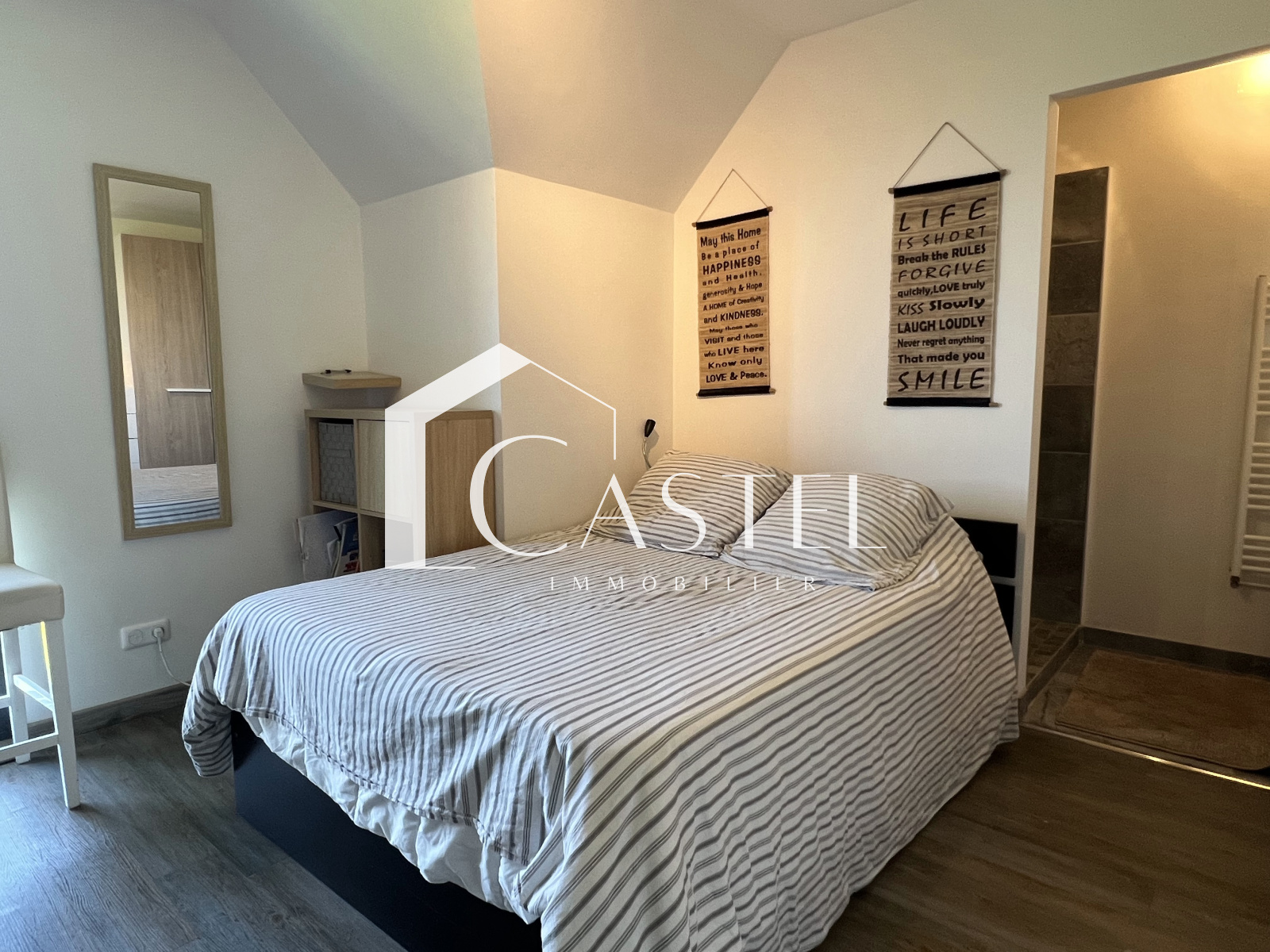 À l'étage, vous trouverez trois chambres avec salle d'eau, offrant à chacun de vos invités ou membres de la famille un espace privé confortable et intime, un wc indépendant. La suite parentale se compose d'un dressing et une salle d'eau.