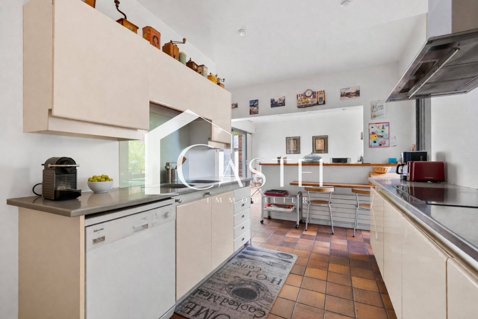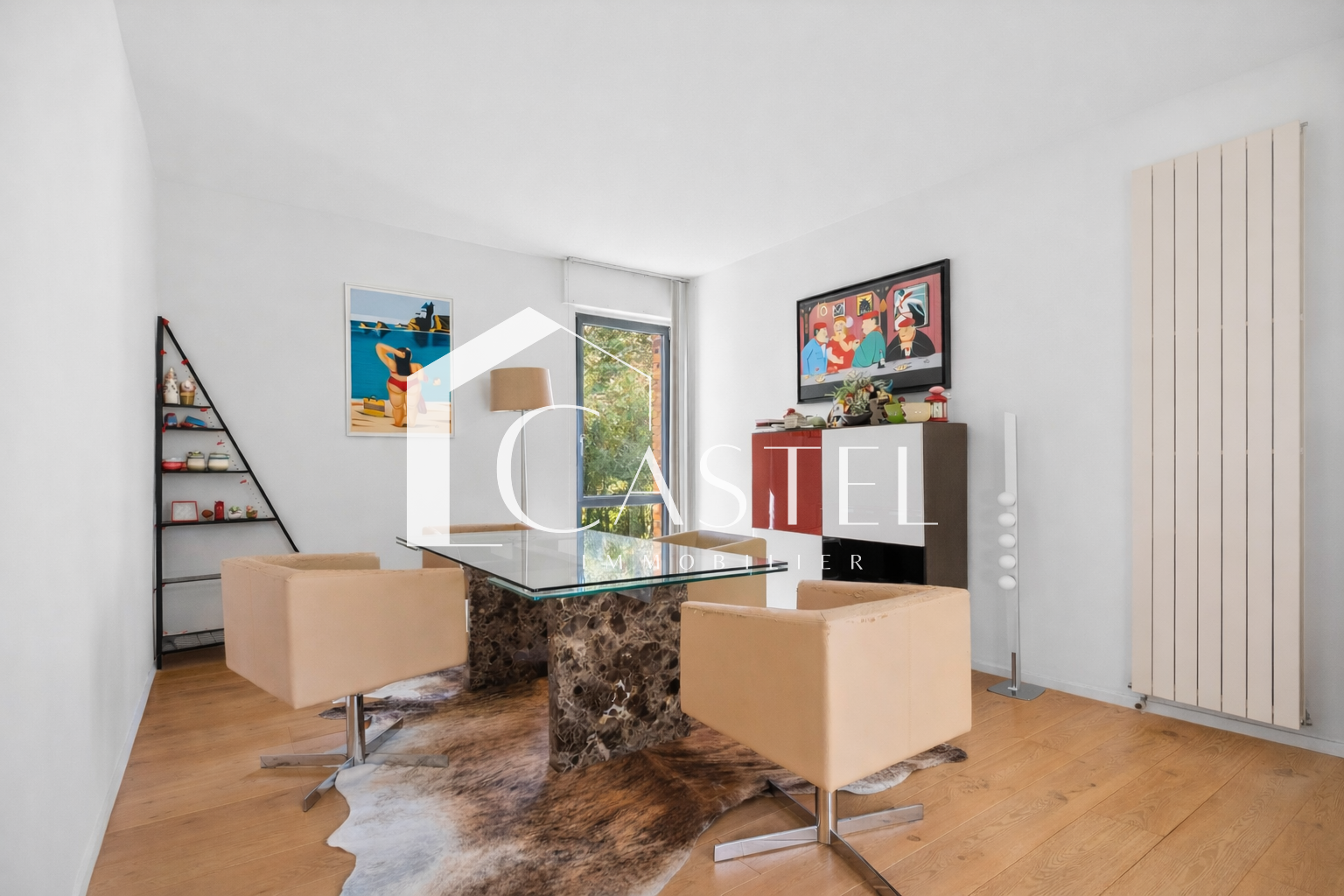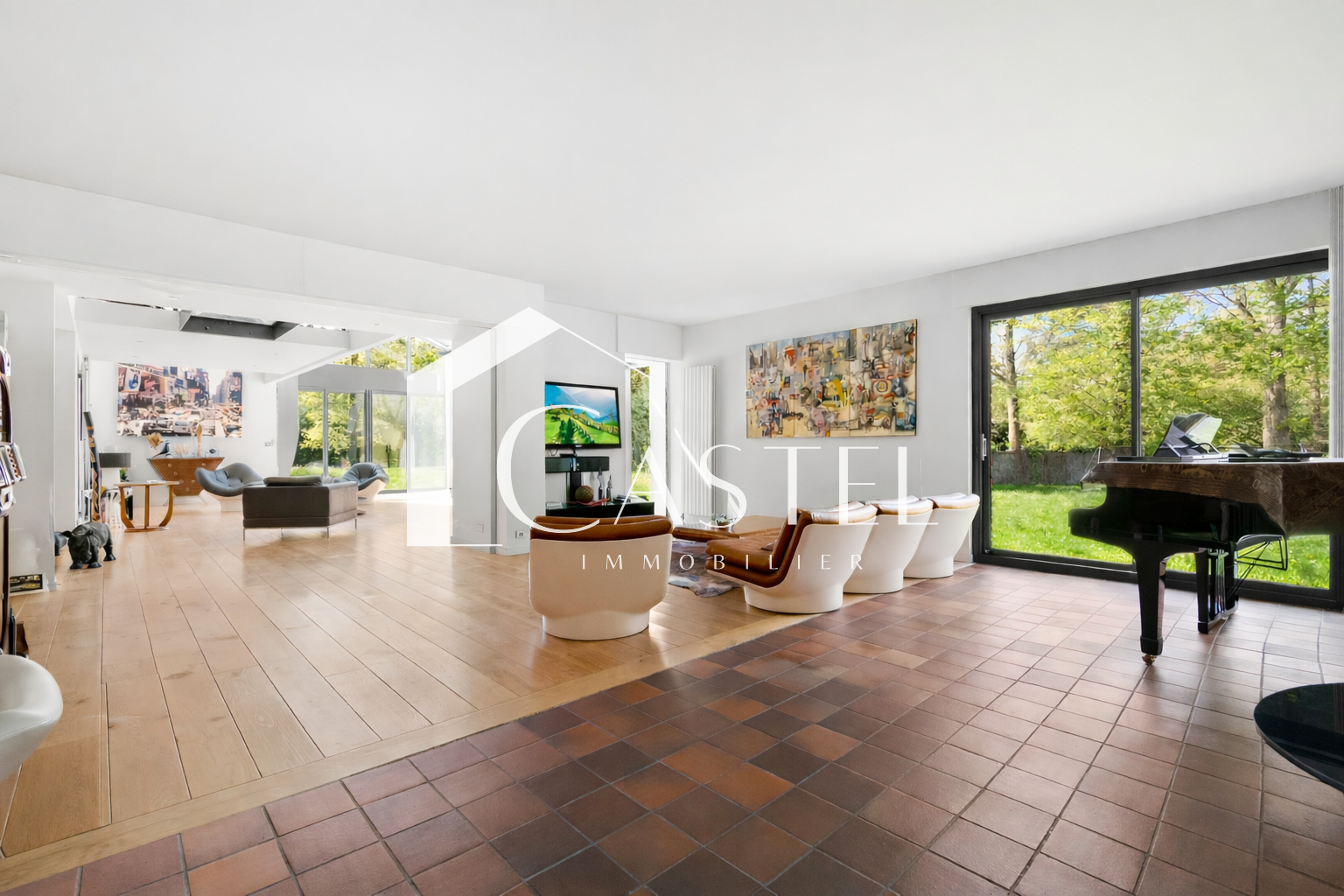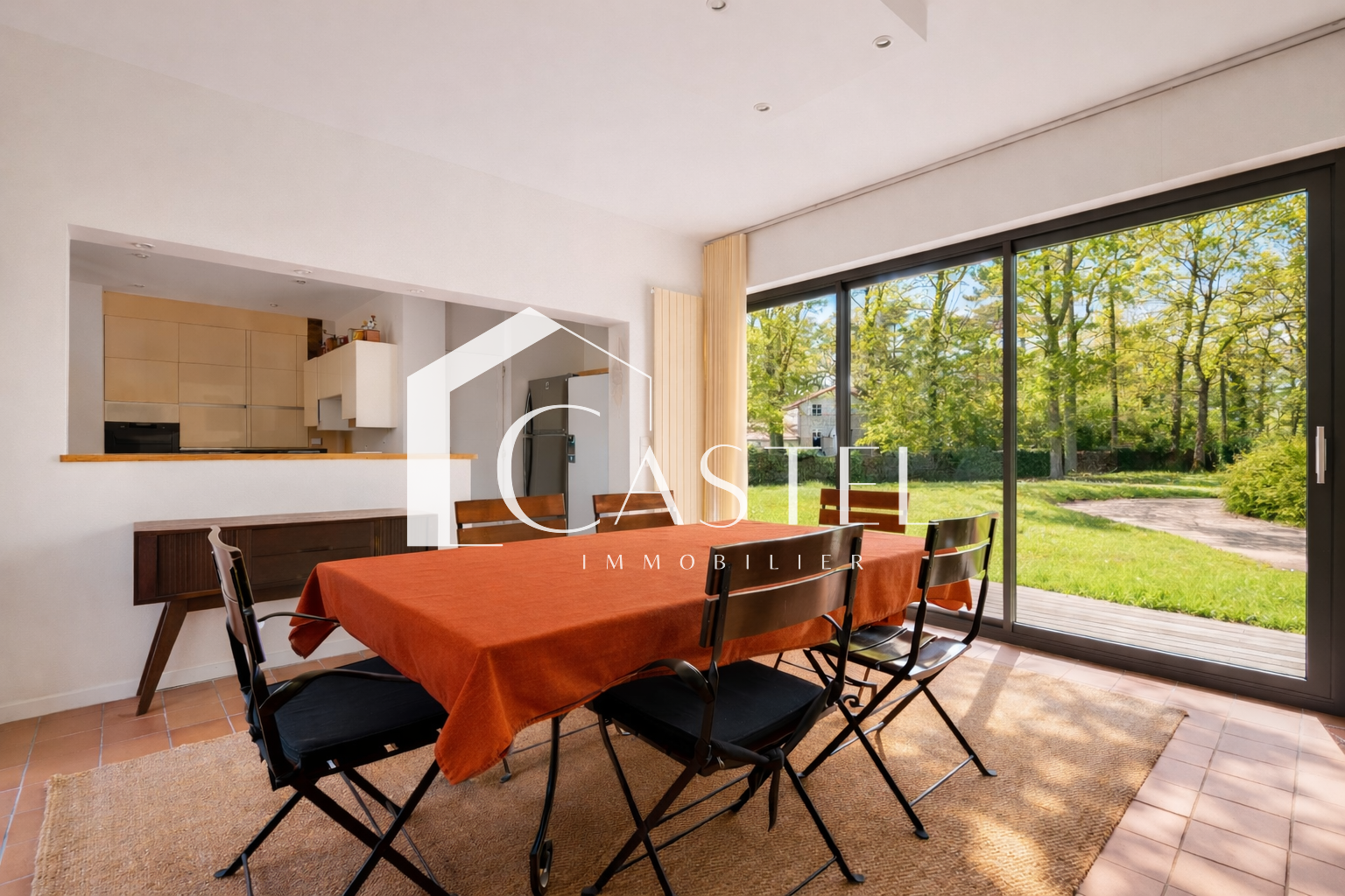 Dès l’entrée, vous découvrez une triple réception parquetée avec séjour et salle à manger, sublimée par une très belle hauteur sous plafond, une cheminée et des expositions multiples dont une sud-ouest, offrant une luminosité remarquable tout au long de la journée. La cuisine dinatoire, aménagée et équipée, bénéficie d’une baie vitrée ouvrant sur l’extérieur.