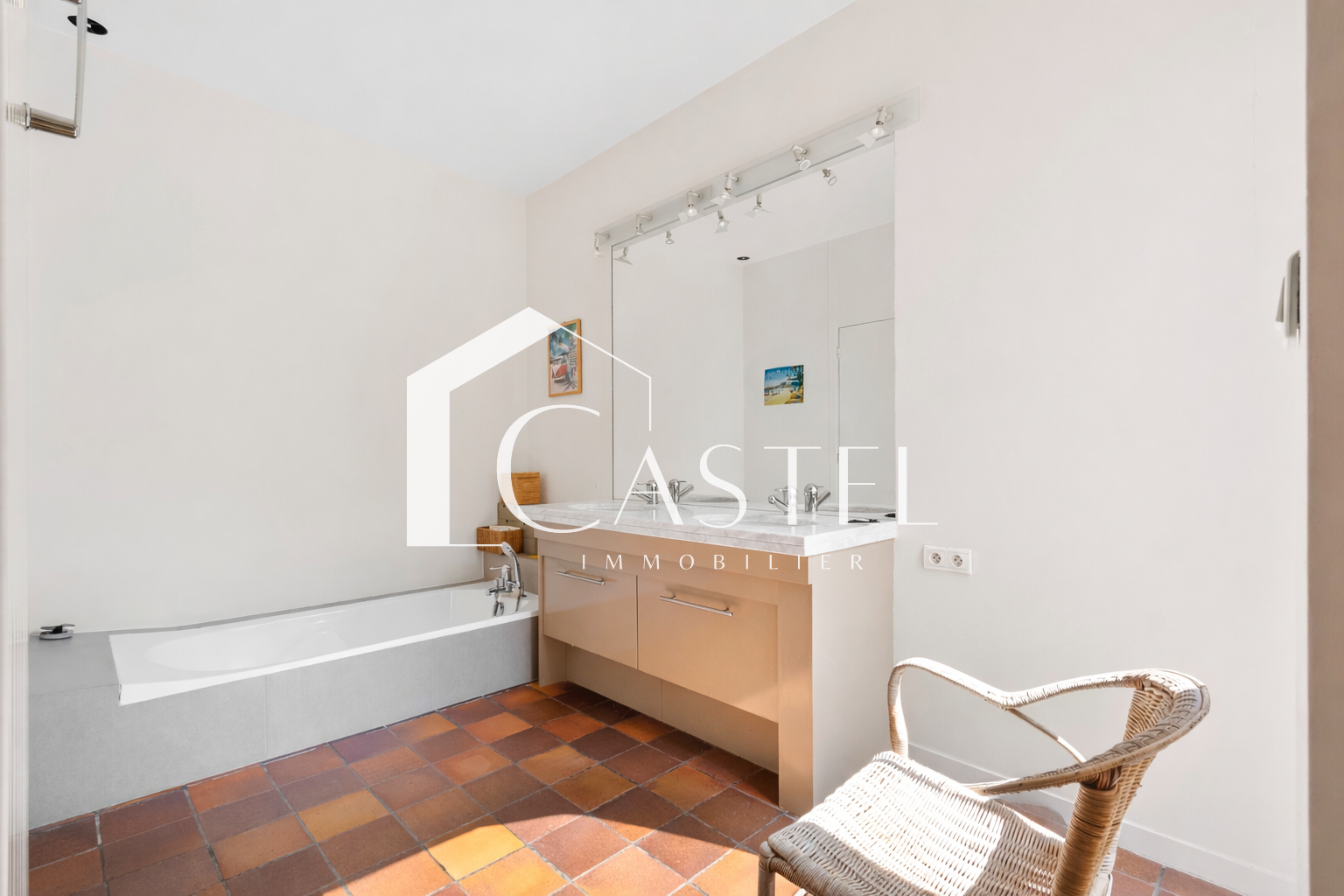 Le rez-de-chaussée propose également deux chambres, un dressing, une salle de bains avec baignoire et douche, ainsi qu’un WC indépendant.